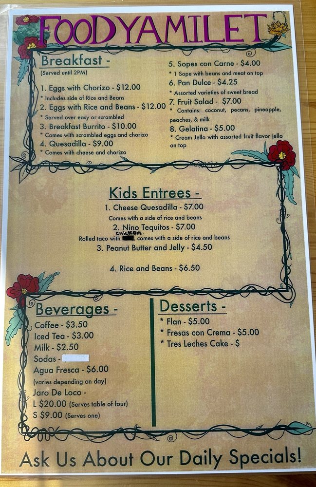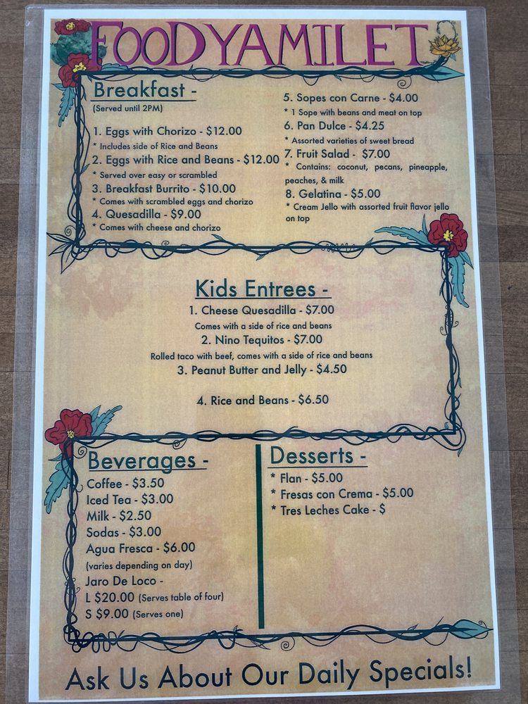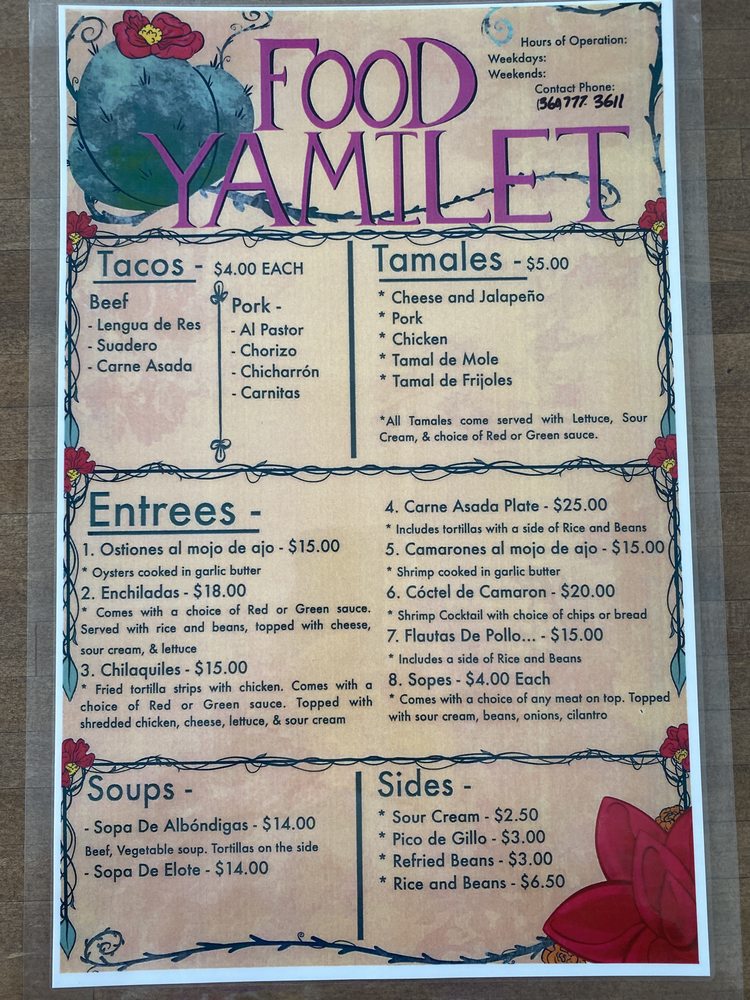 Welcome to Food Yamilet, a delightful gem located at 1003 Pacific Ave, Long Beach, WA. Specializing in Michoacán-style Mexican cuisine, this charming eatery offers a vibrant menu brimming with delicious options for breakfast and brunch. Customers rave about the Eggs With Chorizo and the satisfying Breakfast Burrito, both priced affordably. One standout is the Maruchan Loco, touted as a must-try daily special.